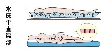 - 測試水床軟硬度非以單手按壓或坐姿,應全身平躺感受懸空之腰部有所支撐即為標準度。